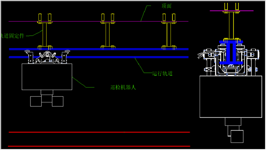 氨泄漏智能监测防控装置须采用轨道安装方式,轨道安装于氨(成品气)管道侧上方,监控装置在轨道上进行24h不间断巡航,搭载红外热成像系统及主动式氨浓度监测系统,完成对含氨设备的无死角全天候监测,及时发现氨泄漏测定其浓度并定位氨泄漏源;搭载声光报警系统,可在紧急事故发生时及时向周边报警。