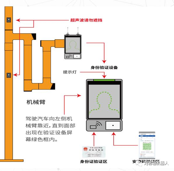 防疫机械臂配合闸机地感系统自启动,并且采用超声装置检测被测人员的车辆高度,自动调整检测装置位置配合驾驶员验证信息;实现高度智能化,通过视觉检测系统和超声检测系统实现车辆车型识别以及车距识别,以此进行机械臂运行路径的准确规划,检测装置内置的染疫风险评估系统可实现前瞻防疫预警,配合行程码比对提前进行染疫风险评估。对比传统人工信息核查的方式,防疫机械臂的优势在于自动化的机械臂形式提高了车辆的通行效率,机械臂自动路径规划给司机提供了便利,其次具有染疫风险评估的检测系统实现了对人口流动的精准调控。