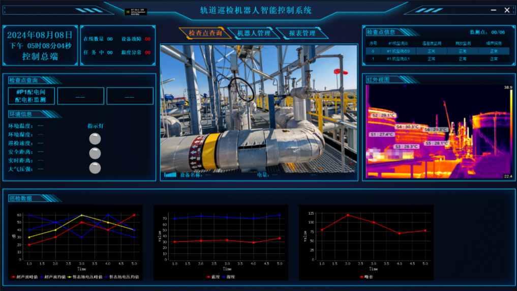 机器人后台系统对传感器数据和仪表读数进行实时分析。系统通过预设的阈值和算法,识别异常情况,如气体泄漏、温度异常、压力超标等。