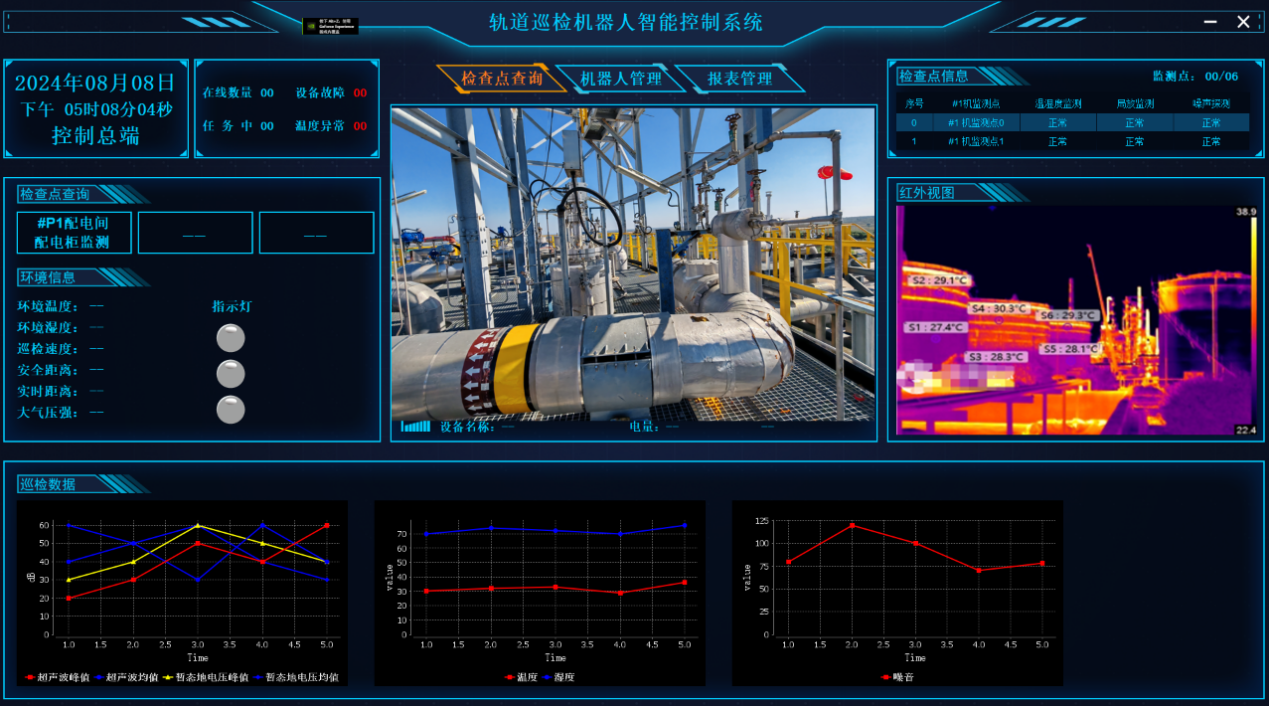机器人后台系统对传感器数据、红外热成像数据进行实时分析。系统通过预设的阈值和算法,识别异常情况,如气体泄漏、温度异常等。